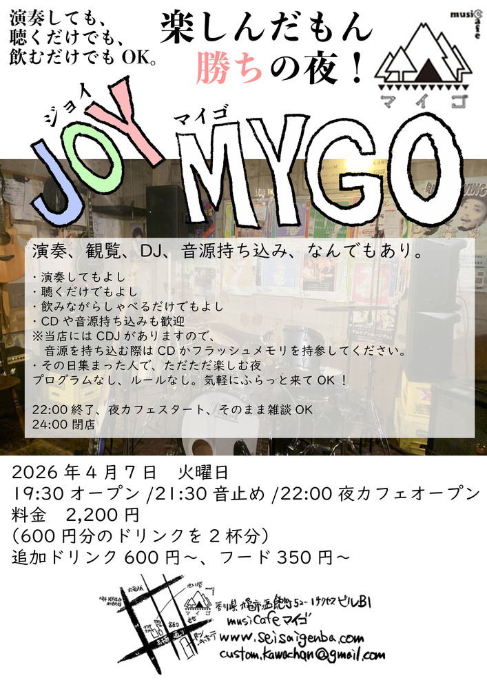 ルールなし。演奏しても、聴くだけでも、飲むだけでもOK。楽しんだもん勝ちの夜!